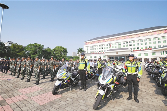 随着誓师大会行动号令的发出,全体参战民警将深入辖区各重点区域、交通干道开展武装巡逻、显性示警,陆地、水域同步设卡,多警种、多部门联合对重点场所、治安复杂部位开展统一清查,形成严打严查严管的高压态势。
