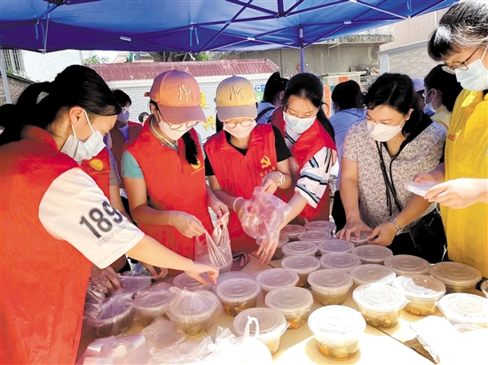 经过志愿者们一轮热火朝天的忙碌后,汤水终于熬好了,材料满满的靓汤被分装好,搭配上一个红彤彤的火龙果。随后,志愿者们组成送汤小分队兵分4路送往威东村的长者家中。