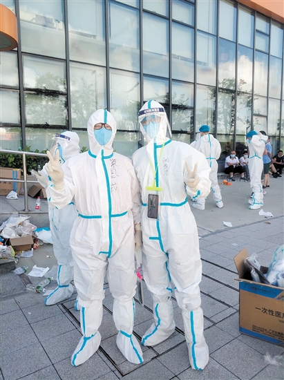 在接下来的几天,他有时跟随医护人员上宿舍扫码测核酸,有时在集中核酸检测点扫码引导,有时帮助清运垃圾,对身上的闷热感和汗臭味也逐渐习以为常。