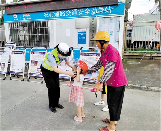 活动中,民警向村民们发放交通安全宣传单张,还向群众赠送头盔,现场示范如何正确佩戴安全头盔,让文明交通、安全出行的理念扎根于群众心中,从源头上保障农村道路交通安全。