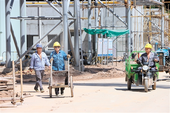 7月21日上午10时,骄阳炙烤着大地,翠山湖高新区的国家电投开平翠山湖燃气热电项目建设现场热火朝天,为保障项目如期建成投产,工人们正在酷暑高温中挥汗如雨,加紧建设。