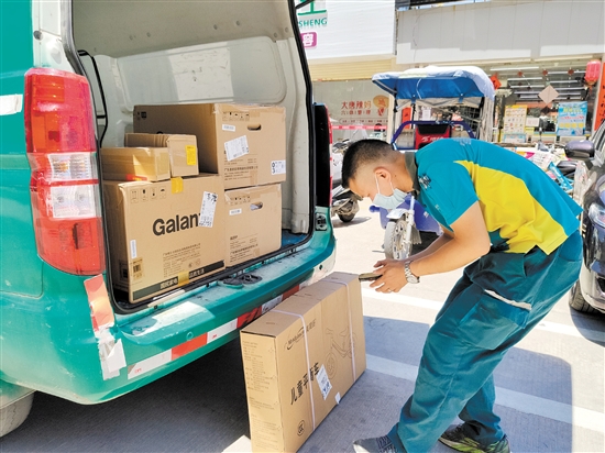 “现在每天得派送一两百件快件,多的时候数量还要翻倍。”刘晓东所负责的片区是冲澄工业区、南岛社区等,经常中午一点才能派送完上午的订单回去吃午饭。高温对于每一位在外奔波的快递员来说都是一种挑战,这不仅仅是体力的考验,更是一种意志上的磨炼。正是因为有了像刘晓东这样的快递“小哥”,才让每位市民的生活变得更便捷、更舒适。