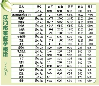 江门市菜篮子报价