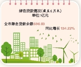 在多项政策措施的推动下,金融机构纷纷加大了绿色贷款的投放力度。截至6月末,全市绿色贷款余额596.83亿元,同比增长134.22%,远高于各项贷款增速。