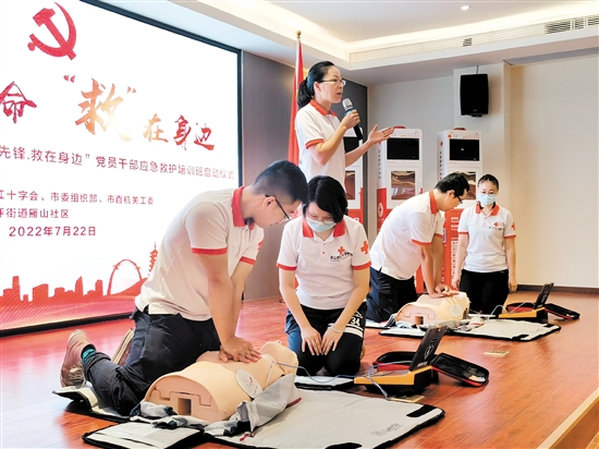 7月22日,第三批AED捐赠当天,鹤山随即开展2022年“鹤山先锋·救在身边”党员干部应急救护培训班。“2020年至今,我们已经开展了35期初级救护员培训班,累计培训党员干部1541名,有效提升了干部队伍的应急救援能力。希望通过逐年分批培训,以持证率每年递增20%为目标,逐步实现全市党员干部全覆盖,更好提升党员应急突击队的现场救护能力,保护市民群众生命安全,彰显为人民服务的初心和宗旨。”鹤山市副市长、市红十字会会长潘蕊说。