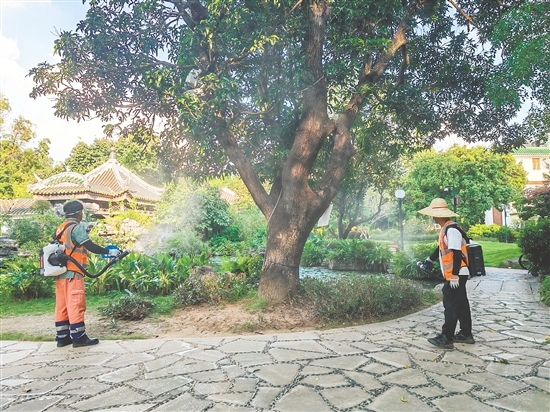 江门日报讯 (文/图 记者/冯瑶君) 为持续巩固来之不易的疫情防控成果,积极响应全区爱国卫生统一行动的号召,切实保障市民群众的身体健康与公共环境安全,近期,新会区城市管理和综合执法局牵头组织城区园林绿化管养单位,聚焦城区人流量密集、市民休闲活动集中的公园广场区域,开展以“清理垃圾积水、强化灭蚊消杀”为核心的公共环境专项整治行动,全方位织密公共卫生防护网。