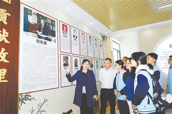 在恩平市沙湖镇东岸村华侨文化主题展区,恩平市侨联副主席梁海芹讲述了恩平市华侨中学校友何欢潮博士与恩平市机电厂合办“高能牌电风扇”,后创办通信、化工企业,反哺家乡的故事。同学们沉浸式感受海内外乡亲“将个人发展与家乡建设紧密相连”的责任意识。