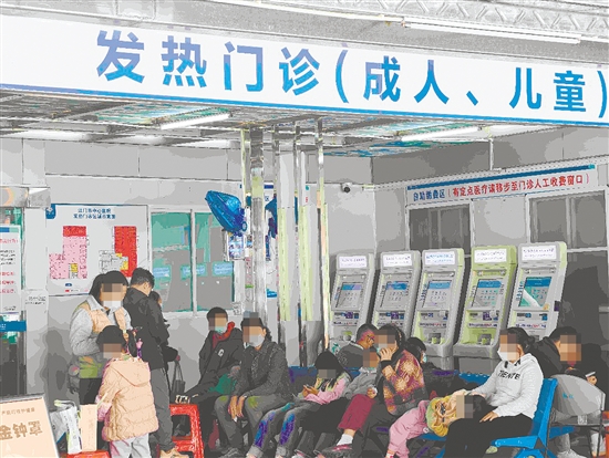 11月28日上午10点,在江门市人民医院,儿童发热门诊挤满了家长和孩子。孩子们的精神状态较差,有的头上贴着降温贴,有的眼角挂着泪珠,有的还眯着眼躺在妈妈怀里……