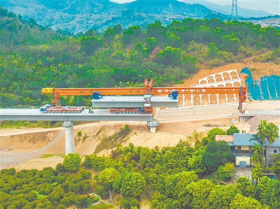 自开工以来,项目部采用具备架设双线和单线特点的JQSD1000吨单主梁新型架桥机,以“标准化、智能化、绿色化”为导向,超前规划资源配置,创新采用“机械化集群作业+信息化动态管控”模式,构建起全流程质量安全保障体系。先后克服了在双线梁上分线进行单线梁架设施工、与广湛高铁并行施工距离受限安全风险高、在明城双线大桥进行自主调头等多重挑战,确保了箱梁架设安全、优质、高效完成。