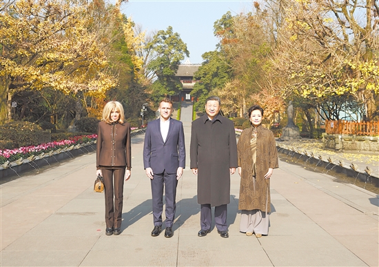 习近平夫妇邀请马克龙夫妇共进午餐,继续深入交流。