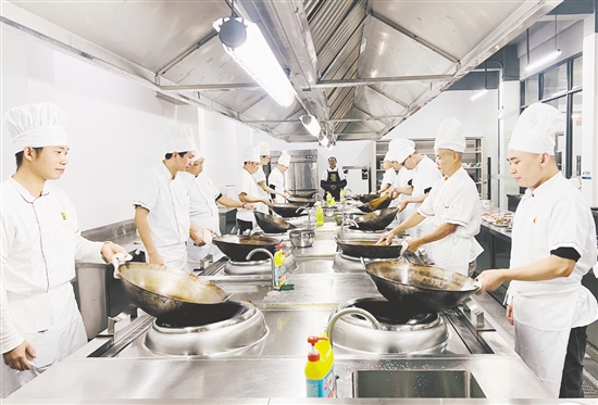12月6日,在广东省“粤菜师傅”技能培训基地(江门·开平),一场中式烹调师结业暨“开平优品”菜品展示交流活动热闹举行。以“开平优品”为命题,21名学员分组同台竞技,展示学习成果。来自开平市康华养老服务中心的维修工关钦洋,凭借一道“蟛蜞酱糯米蒸排骨”赢得关注。他原是一名电器维修工,因对厨艺有兴趣而主动报名培训。“培训老师专业,我的厨艺进步很快,还考取了国家职业资格证书。”关钦洋说。如今,他常协助单位厨房工作,既帮补人手,也增加收入。