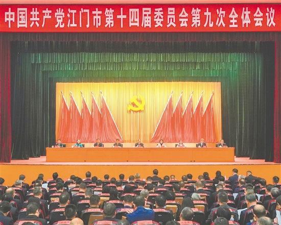 江门日报讯 (记者/唐达 通讯员/莫小青) 12月10日,中国共产党江门市第十四届委员会第九次全体会议召开。会议以习近平新时代中国特色社会主义思想为指导,全面贯彻落实党的二十大和二十届历次全会精神,深入学习贯彻落实习近平总书记视察广东和出席第十五届全国运动会开幕式重要讲话重要指示精神,落实省委十三届七次全会部署,研究谋划“十五五”时期经济社会发展,奋力增创新优势、实现新突破,共同扛起“走在前、作示范、挑大梁”的责任担当,不断开创江门现代化建设新局面。市委常委会主持会议。市委书记陈岸明代表市委常委会作报告,并就有关文件稿向全会作说明。