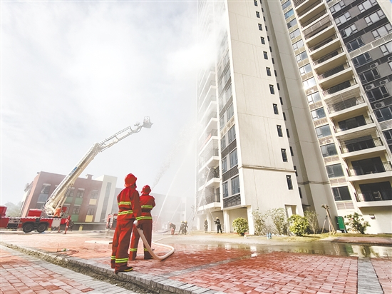 江门日报讯 (文/图 记者/周晓营) 12月11日上午,恩平市多部门联合在碧桂园世纪城小区开展高层建筑消防综合演练,模拟高层住宅因电器短路引发火灾后的全流程应急救援,旨在检验应急预案可行性,强化部门协同,提升高层建筑火灾应急处置能力。