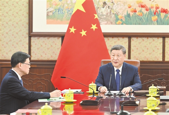 习近平指出,中国共产党二十届四中全会对“十五五”时期国家经济社会发展作出战略擘画,强调要坚定不移贯彻“一国两制”、“港人治港”、高度自治方针,促进香港长期繁荣稳定。特别行政区政府要主动对接国家“十五五”规划,坚持和完善行政主导,扎实推动经济高质量发展,深度参与粤港澳大湾区建设,更好融入和服务国家发展大局。