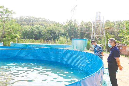 冬日暖阳,鹤山市龙口镇松岗村的高密度养殖基地里,村民饲养的走地鸡穿梭其间吃杂草,通过循环生态的作用,为来年春天的鱼苗繁育积蓄了养分。“多亏了鹤山市人武部帮我们建起这个‘聚宝盆’,我们现在搭起了鱼苗繁育养殖全链条产业链。”松岗村党支部书记李健文说。