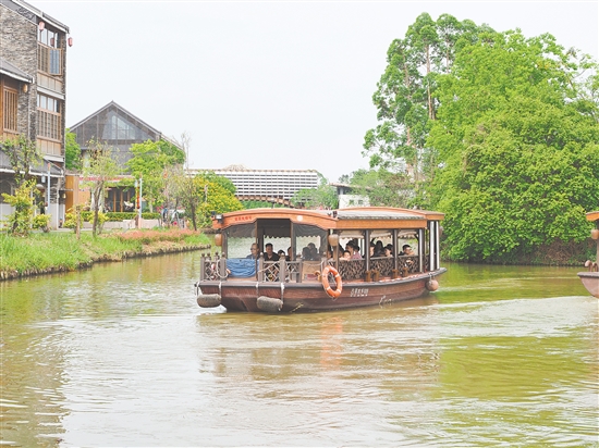 感受水乡风情的最佳方式,莫过于乘坐“横海泛舟”游船从景区游客中心码头出发,沿着纵横交错的河道深入水乡,体验“船在画中走,人在画中游”的快乐。记者昨日在景区游客中心码头看到,现场有大量游客排队等候乘船,登上古色古香的游船后,游客们“零距离”观赏水乡自然风光,远眺白鹭展翅,并用手机、相机记录下美景。