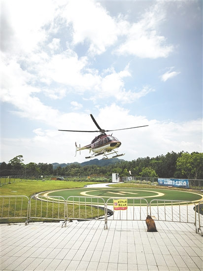 节日期间,位于恩平泉林黄金小镇的飞行主题馆迎来大量客流,主题馆推出的直升机游览体验基本排满。