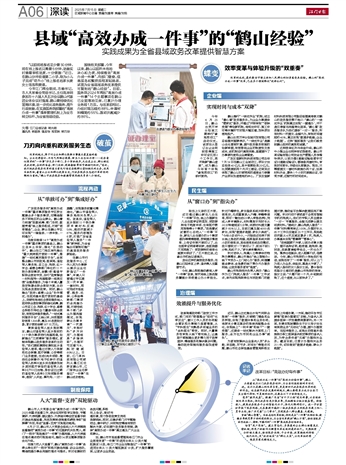 围绕有关部署,今年以来,鹤山以前所未有的决心和力度,持续推进“高效办成一件事”,向部门壁垒、信息孤岛和繁琐流程发起挑战,试图为全省县域政务改革提供可复制的“鹤山经验”。目前,国务院2024年两批“高效办成一件事”14个主题事项在鹤山已全面落地见效,已累计办理业务超1万宗。与改革前相比,办结时限压缩约88%,申请材料精简约55%,跑动次数减少约86%。