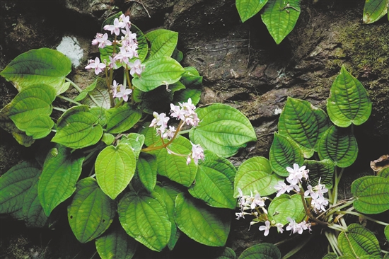 引路的工作人员在这已工作十多年了,早年毕业于华南农业大学。她熟悉林区四季的风貌,熟悉每一株植物在每一个季节里的状态,甚至熟悉它们在晨昏之间树影和光线的变化。开着粉蓝色小花的陈氏异药花、高大挺立的落羽杉,还有披针形叶片、碗状花冠的辐冠苣苔,在她的指点下,这些植物仿佛被赋予了生命,展示着这片森林的独特。“陈氏异药花生长在沟谷岩壁上。”对于自然科学科研工作者来说,最大的成就莫过于发现新的物种并得到认可。听说陈氏异药花、辐冠巨苔就是保护区工作人员在江门七星坑自然保护区发现后被认可的植物新物种,这也是保护区工作人员一直引以为傲的地方。