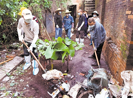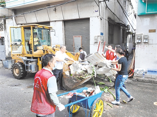 党员顶着灼人烈日,在老旧小区楼顶搬运堆积多年的废弃物;志愿者手持工具,走街串巷清理垃圾和积水;群众纷纷拿起扫帚,主动打扫房前屋后,按时点蚊香……10月6日,一场以“清积水、清垃圾、灭毒蚊”为主题的大行动在江门全面铺开。