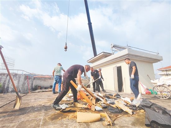 村(社区)作为防蚊灭蚊重要阵地,防控任务尤为紧迫。“两清一灭”号召发出后,各街道、村(社区)积极行动,依托网格,市区直党员干部、网格员、志愿者下沉一线,深入村头村尾、背街小巷,针对房前屋后、绿化带、楼道等易孳生蚊虫的卫生死角进行“地毯式”清理,从源头消除病媒生物孳生环境。同时,向闲置房屋发起攻坚,将堆积的塑料瓶、陶罐、废旧轮胎装车运走,并多方联系屋主,征求其同意后清拆危房,对公共场所、巷道、阴暗角落等进行消杀,在室内点灭蚊烟片。针对灌木丛、建筑工地等传统人力难以到达之处,江海区利用无人机喷洒消杀,做到全覆盖,不留死角。