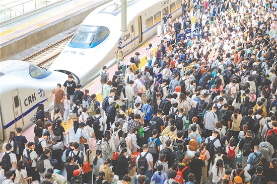来自交通运输部的数据显示,10月7日全社会跨区域人员流动量超3.09亿人次,同比增长18.6%;预计8日全社会跨区域人员流动量超2.9亿人次,同比增长11.3%。为应对持续攀升的返程客流,各地交通运输部门持续加码运力,不断升级服务,确保人们平安、顺畅返程。