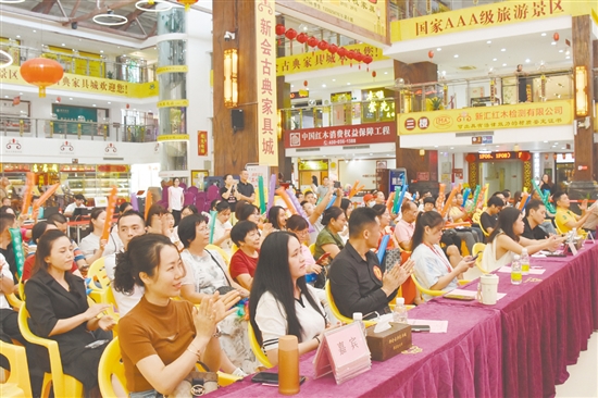 在“幸运红包墙”活动里,消费者根据消费额度获得抽奖机会,将精美红木家具、数码家电等惊喜好礼带回家。此举极大激发了游客的购物热情,博览中心内咨询、选购、参与活动的顾客络绎不绝,有效拉动假期消费市场,展现了新会古典家具产业的蓬勃生机与独特魅力。