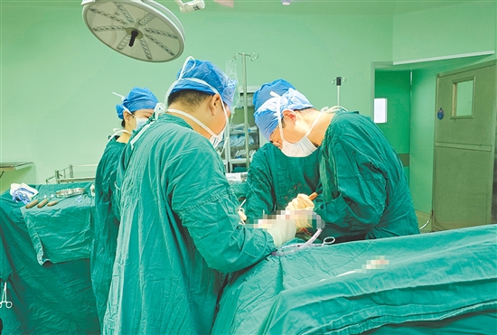 在付兆宗主刀下,按照团队讨论方案,有条不紊地展开手术。弧形切口、游离骶骨周围肌肉韧带、分离腹侧结构、整块离断骶骨和病灶,胃肠外科团队协助,分离切除受累的肠系膜和韧带。手术历时6.5小时,患者出血600ml。