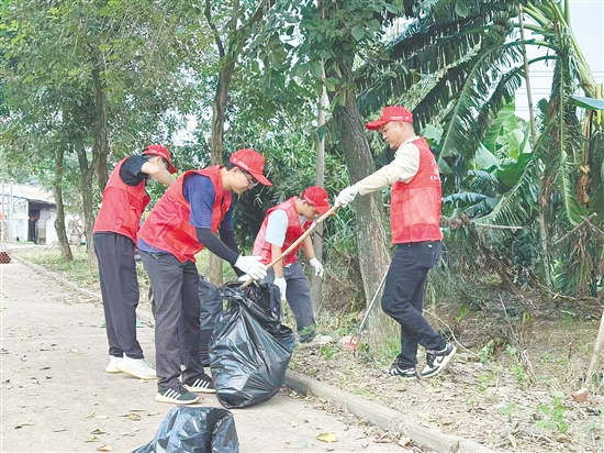“这些螺壳还挺难发现的,一下雨就可能会积水,所以一定要清走。”在潮连街道塘边社区的一个鱼塘边,广东江门中医药职业学院的教师们边清理边商量。鱼塘边的卫生情况复杂,有不少隐藏在草丛和泥土中的塑料瓶和杂物。另一边,经过“地毯式”排查,五邑大学的教师们在10月11日上午就合力清理了9大袋垃圾。