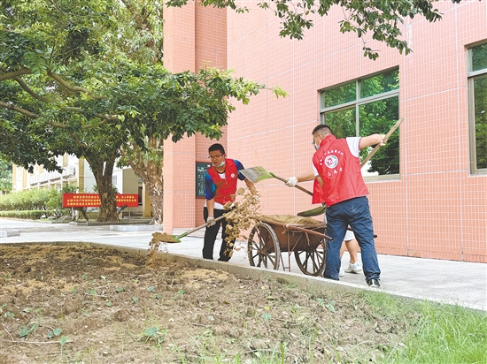 梅江小学的老师们拿着扫帚,沿着校园道路清扫落叶与杂物;奇榜小学的老师们合力清理教学楼顶天台的破旧隔热层,将废弃材料打包清运;潭冲小学的教师推着小车,将新沙运到花圃,重新填铺裸露的土地,减少蚊虫栖息空间;新会实验小学的老师忙着清理鱼池,更换浑浊的水体;新会华侨实验小学的教职工们为校园里一道道水渠铺上防蚊纱网……在新会区教育局的统筹指导下,全区各学校、幼儿园将“两清一灭”行动作为校园环境整治的重要内容,制定详细实施方案,明确责任分工,师生联动,全域覆盖。