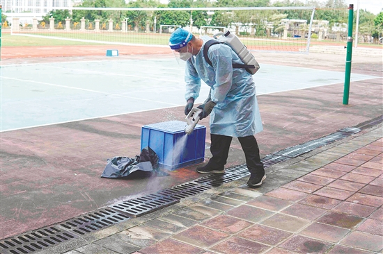 台山市各学校同步建立内部网格化管理体系,将校园划分为若干责任区,明确责任人,开展日常巡查与定期消杀。在台山市技工学校,行政人员、教职员工和后勤人员化身“网格卫士”,每日对垃圾站、下水道、绿化带等重点区域进行“地毯式”清理,翻盆倒罐清除积水,同时,配合专业消杀,从源头上铲除蚊虫孳生环境。