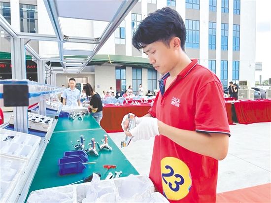 据了解,本届大赛比拼的内容为水龙头安装,来自址山镇多家重点企业的29名技术能手同台竞技、大展身手。比赛要求参赛选手在10分钟内完成水龙头组装,并从作业规范、产品质量与生产效率三个维度进行综合考评。比赛现场,参赛选手们纷纷亮出“看家本领”,在配件组装、精度调试与品质检验等环节中动作娴熟、操作严谨,展现扎实的专业功底。