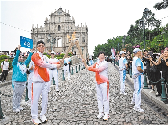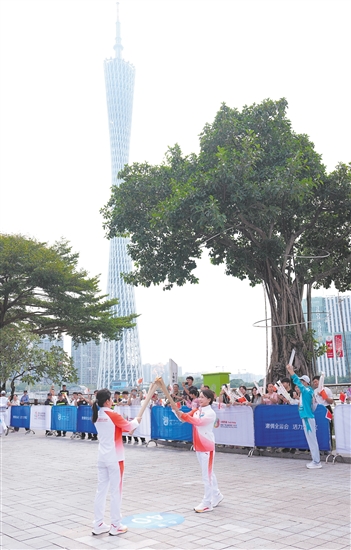 新华社深圳11月2日电 第十五届全国运动会火炬传递2日在香港、澳门、广州、深圳四个城市同步举行,这是全运会历史上首次跨境火炬传递,也是全运会火炬首次在香港和澳门传递。