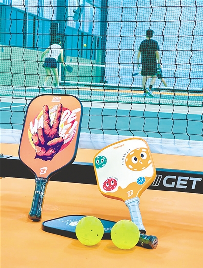 在另一片场地上,新球友李先生经教练讲解规则和技巧后,快速上手,与伙伴激烈切磋。作为羽毛球、网球爱好者,李先生学起匹克球来事半功倍。“它很有趣,既有网球的策略,又有羽毛球的灵巧,对体力和技巧的要求比较均衡,不容易受伤,社交属性也很强。”