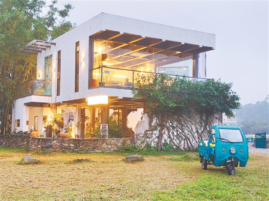 走进创意园,簕菜种植基地里,嫩绿的簕菜长势喜人;稻田绵延不绝,沉甸甸的稻穗传递着丰收的喜悦;咖啡馆中,不少游人品尝美味饮品的同时,远眺群山,近看田野;乡村风格的民宿设计别致,小阳台外的连片田园风光美不胜收。