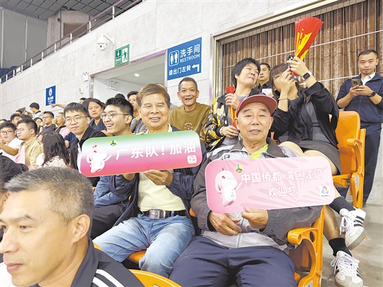 当天,不少澳门市民也特意前来赛场支持澳门队。“我们特意从澳门过来看比赛,我很喜欢打排球,这是第一次来到台山,台山的排球氛围非常好,在这里看比赛很爽。”澳门排球爱好者罗锦源兴奋地说。澳门球迷程子扬表示,粤港澳大湾区的交通网络很发达,从澳门自驾来台山仅需约1.5个小时,随时都可以驾车过来看球赛、吃黄鳝饭,感受台山的排球氛围,游玩侨乡。“在现场看完比赛,我感觉全运会真是高手云集,我们这次的对手广东队很强,希望澳门队在此次比赛中掌握更多经验,打出更好的成绩。我们会继续来台山支持澳门队。”他还表示,十五运会搭建了良好的体育交流平台,大家因排球而紧密相连,促进了彼此在体育领域的开放互赢。