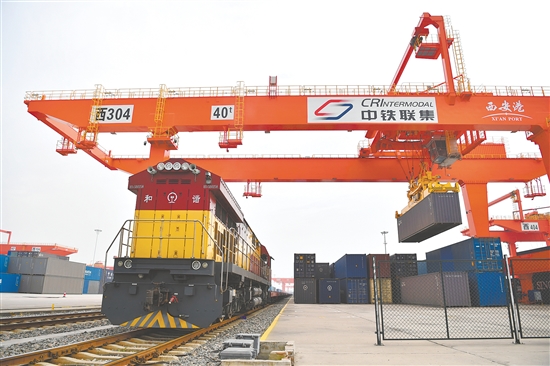 2013年,西安发出首趟中欧班列。现在,这里的中欧班列开行量、货运量、重箱率等核心指标连续多年位居全国第一。目前,中欧班列(西安)的始发地——位于陕西西安浐灞国际港的西安国际港站已建成铁路作业线59条,拥有3束6线的铁路集装箱中心站,设计集装箱年吞吐量540万标箱,建成投用哈萨克斯坦西安码头等一批面向欧亚的交易和运输项目,使其加速成为现代化的国际商贸物流枢纽。