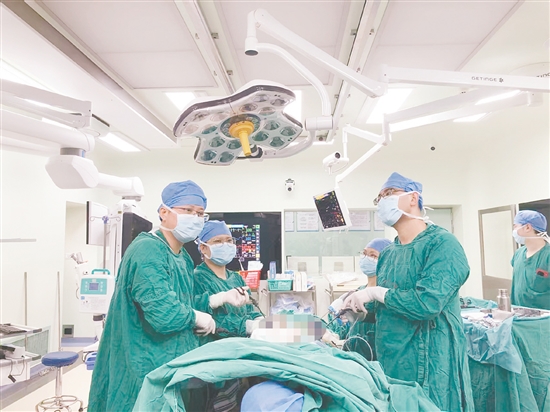 时间在紧张的操作中一分一秒流逝,手术室里只有器械碰撞的轻微声响和医护人员的低声交流。“整个过程没有出现大出血、休克等危急情况,但操作难度极大,节奏必须放慢,每一步都走得特别慢,格外小心。”伍远维回忆,长时间站立让医护人员的双腿早已麻木,持续盯着屏幕的眼睛酸涩难忍,但没有人有丝毫松懈。主任护师林碗娜、主管护士冯婉静则默契配合,及时传递器械、擦拭汗水,为手术顺利推进提供重要保障。“手术从下午4时多开始,我们中午就吃饱喝足,上好洗手间,因为一旦开始就不能中途停下。”伍远维的话语中透着朴实,却道出了背后的艰辛——连续12小时的站立、专注,对体力、眼力和意志力都是巨大的考验。
