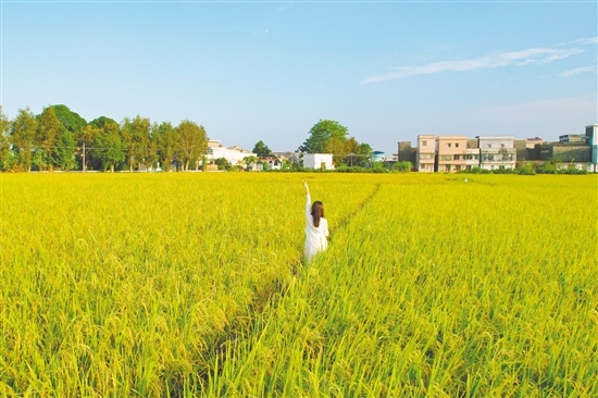 眼下,江门乡村稻田铺成金色画卷,沉甸甸的稻穗随风摇曳,同样吸引不少游客专程打卡稻田游,定格丰收图景。