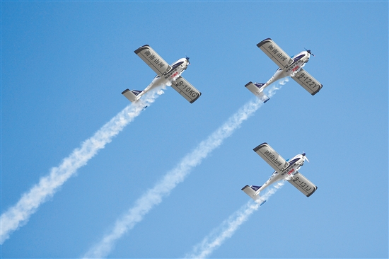 图为11月21日在株洲芦淞机场拍摄的动态飞行表演。