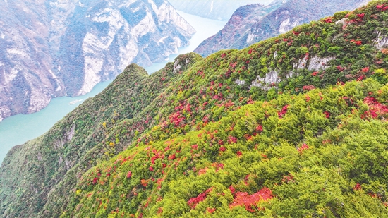 冬日时节,位于重庆市巫山县境内的长江巫峡一带被渐次变红的红叶点缀,呈现出如诗如画的美景。巫山县拥有120万亩、近200种红叶,红叶观赏期从11月延续至次年1月。图为11月22日拍摄的长江巫峡段景色(无人机照片)。