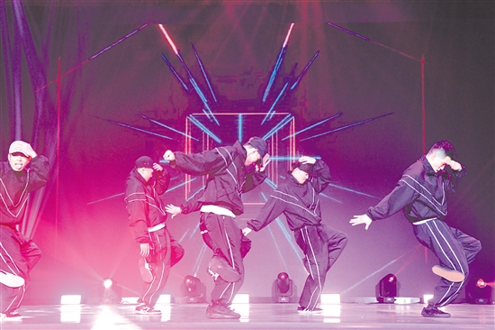 舞台上,两岸街舞爱好者带来各自的拿手节目:江门本土舞团Solstep Dance以“逐步光年”为理念,用充满力量的舞姿展现两岸青年共有的成长节奏与追梦热忱;台湾舞团丹舞艺术以复古舞步唤醒两岸青年共同的时代记忆,展现跨海峡的文化共鸣;江门异域舞团AlienZ CREW带来作品《迁阶》,融合了咏春和八卦掌等江门传统武术招式,让人耳目一新……伴着动感音乐和绚丽灯光,两岸青年舞者尽情展示风采与活力,绽放激情与创意。