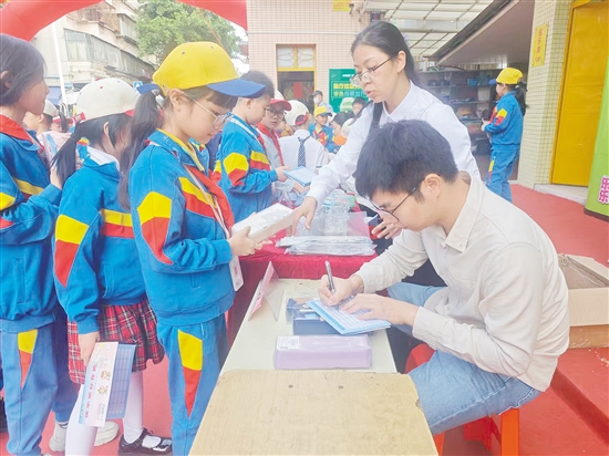 “学生在德育(如文明守纪)、智育(如勤学善思)、体育(如积极参加体育运动)、美育(如参与各类艺术比赛及活动)、劳育(如参与家务劳作、班级劳动、校内外实践活动)等方面有积极表现或养成良好习惯,都可以获得对应的‘快乐成长积分卡’。”该校校长助理吴雪雁介绍,学生的课堂表现是“快乐银行”综合评价体系的重要考查内容,学生有热爱上学、规范完成作业、课堂表现积极、学业评价优秀等表现,都能积累较高积分。“为了进一步激发学生的阅读兴趣、提升写作水平,学生的作品刊登在《江门日报·青苹果》校园专刊,我们也会奖励相应积分,鼓励他们再接再厉,不断提升自我。”吴雪雁说。