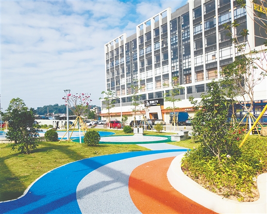 清晨的阳光透过新栽的绣球风铃木枝叶,在开平城区科展路“口袋公园”的透水砖地面洒下斑驳光影。几位老人坐在花池边的休闲椅上悠闲聊天,孩童在广场空地上嬉戏奔跑。这个占地1800平方米的“口袋公园”,几个月前还是一片杂草丛生的闲置地,如今已成为周边居民日常休闲的首选之地。
