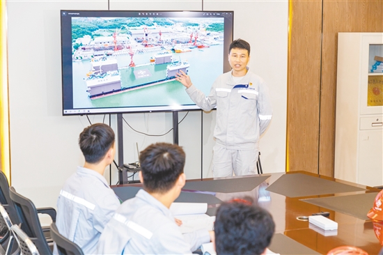 在担任全球最大宽扁浅吃水型45000DWT半潜驳“四航永兴”号建造总工程师时,饶燃迎来了职业生涯的又一高峰。他不断优化X型剖口焊接工艺,创造性提出“陆地制作+水上合拢”技术方案,并首次引进高精度全站仪进行测量控制。其提出的“错排”上排方式,以巧思化解难题,赢得了业主与船东的高度肯定。该项目关键技术入围2024年粤港澳大湾区高价值专利培育布局大赛百强,项目社会效益凸显。