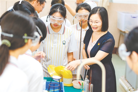 面对生源变化的新挑战,谭琼念深入学习教育强国建设规划纲要,积极探索“2.5+3.5”初高中贯通培养模式,构建拔尖创新人才培养体系,大力推行项目式学习,带领团队推动科学教育一体化。在她的带领下,新会一中办学质量持续提升,荣获江门市教育质量先进学校一等奖、全国文明校园等荣誉。