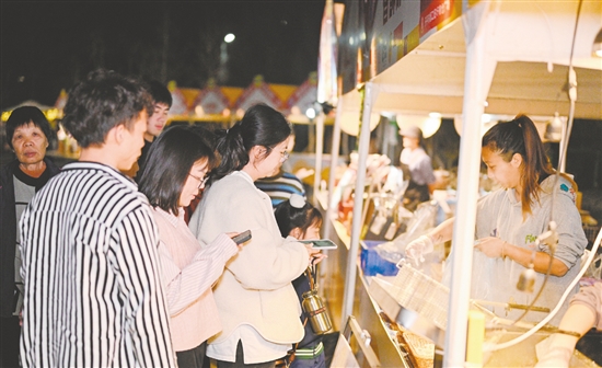 摊主冯良力带来的冬瓜茶和木薯红豆沙,食材均源自塘口本地。“靠着‘塘口优品’的行政品牌号召力,很多游客专门来找本地小吃,人流量远超预期。”他笑着说。