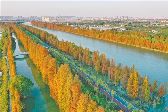 冬日的江海区,礼乐绿廊碧道宛如画卷。河边落羽杉红意蔓延,热情不减,将整片林子染得斑斓。漫步林中碧道,落叶铺就绒毯,枝干高耸交织成绚丽穹顶,阳光洒下,光影斑驳,如梦似幻。羽状叶子如同跳舞的蝴蝶,红、橙、黄、绿交织。微风拂过,林声如乐,河面涟漪荡漾。