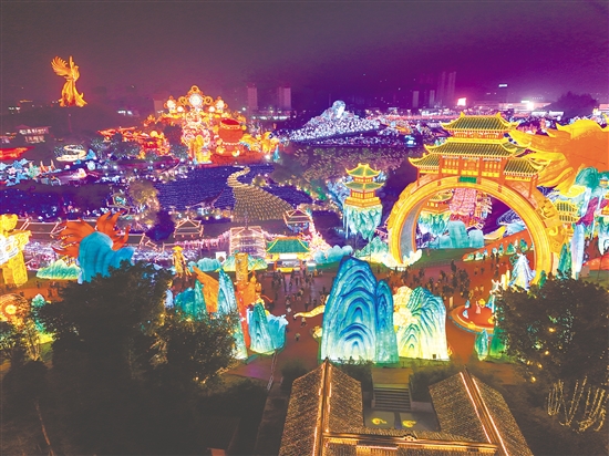 1月23日晚,第32届自贡国际恐龙灯会亮灯暨四川省迎春文旅促消费活动在四川省自贡市中华彩灯大世界启幕。
