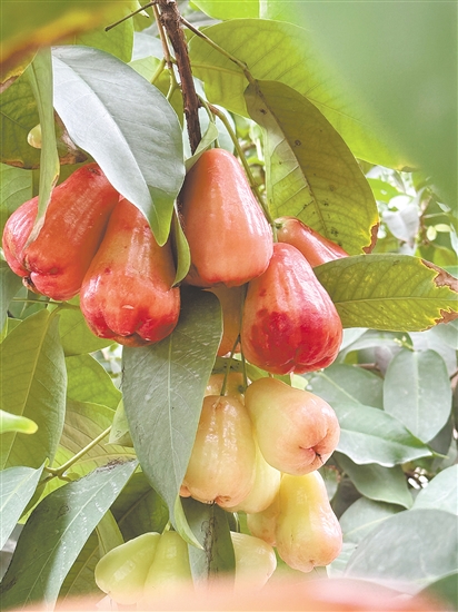 在江门明惠水果专业合作社,红彤彤的莲雾挂在枝头。